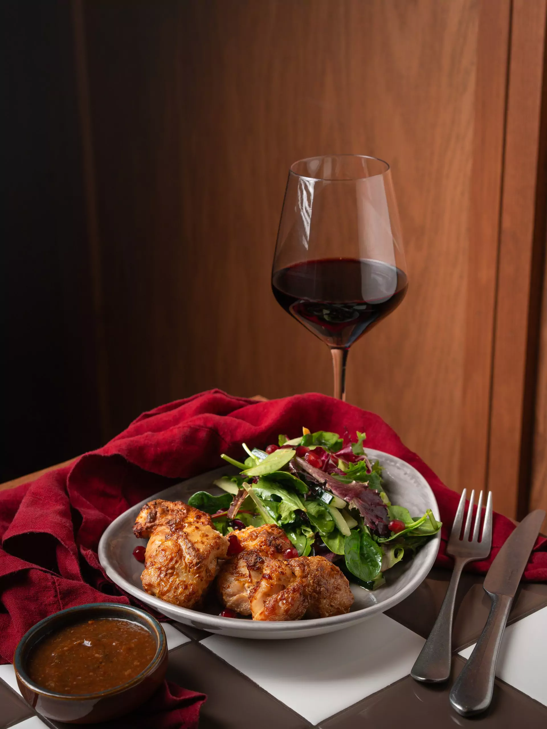 Grilled chicken skewers with a salad on the side